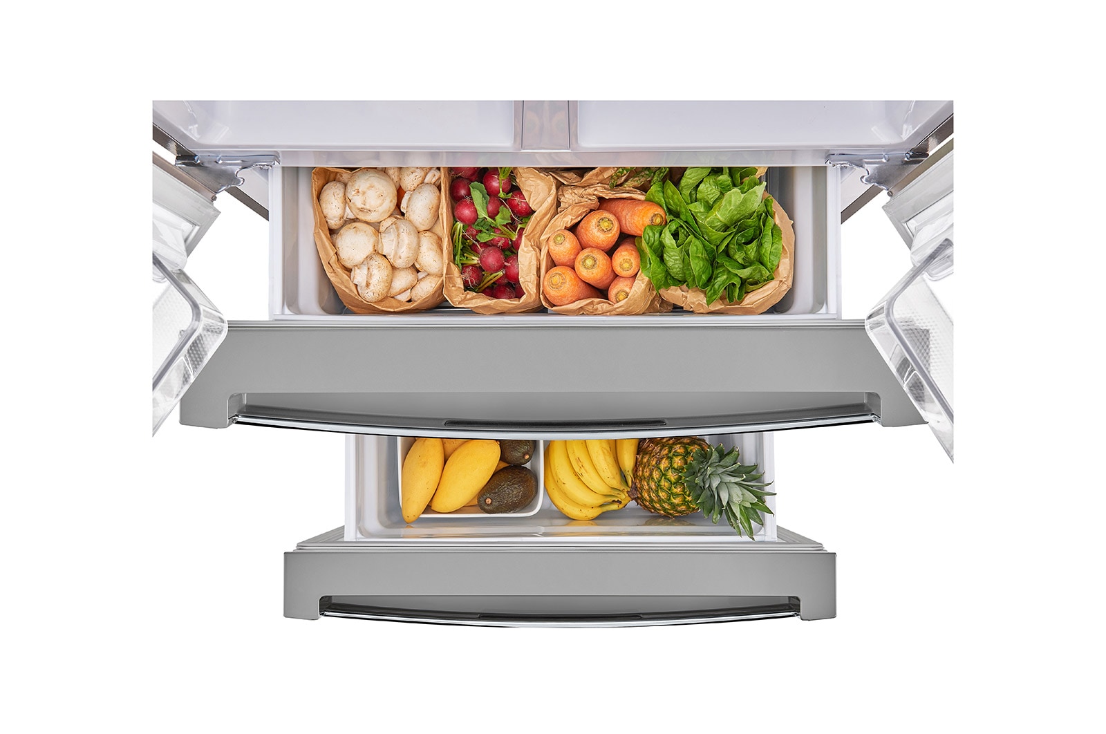 Keep cold air in the fridge areas that are frequently opened. Freshness guard covers reduce cold air loss when users open the two top doors.